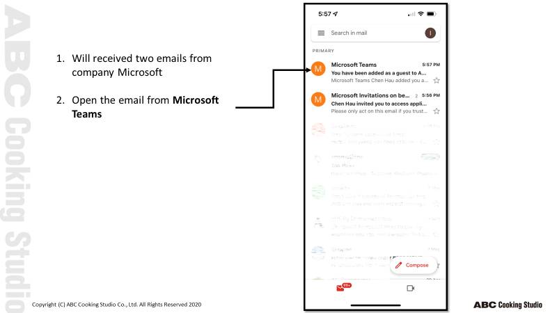 Step 2: Click on the email from Microsoft Team to join into ABC Cooking Studio Team.