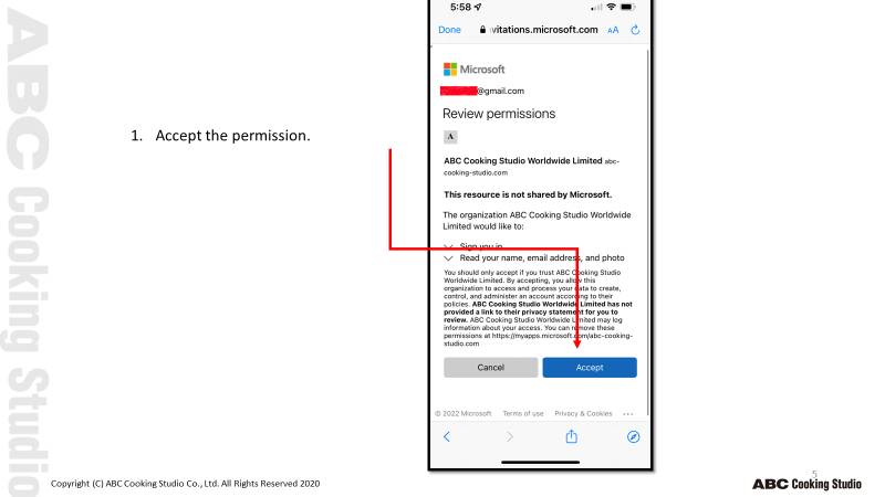 Step 1: Accept an invitation from ACB Cooking Studio Admin.