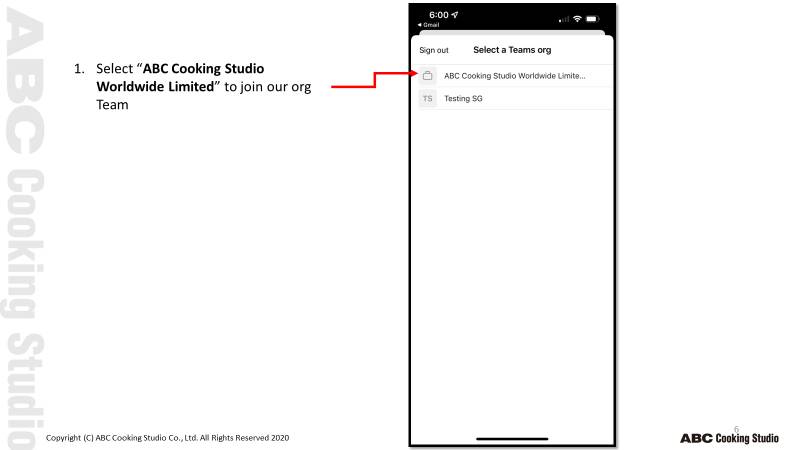 Step 5: Select "ABC Cooking Studio Worldwide Limited" to join into our Org Team